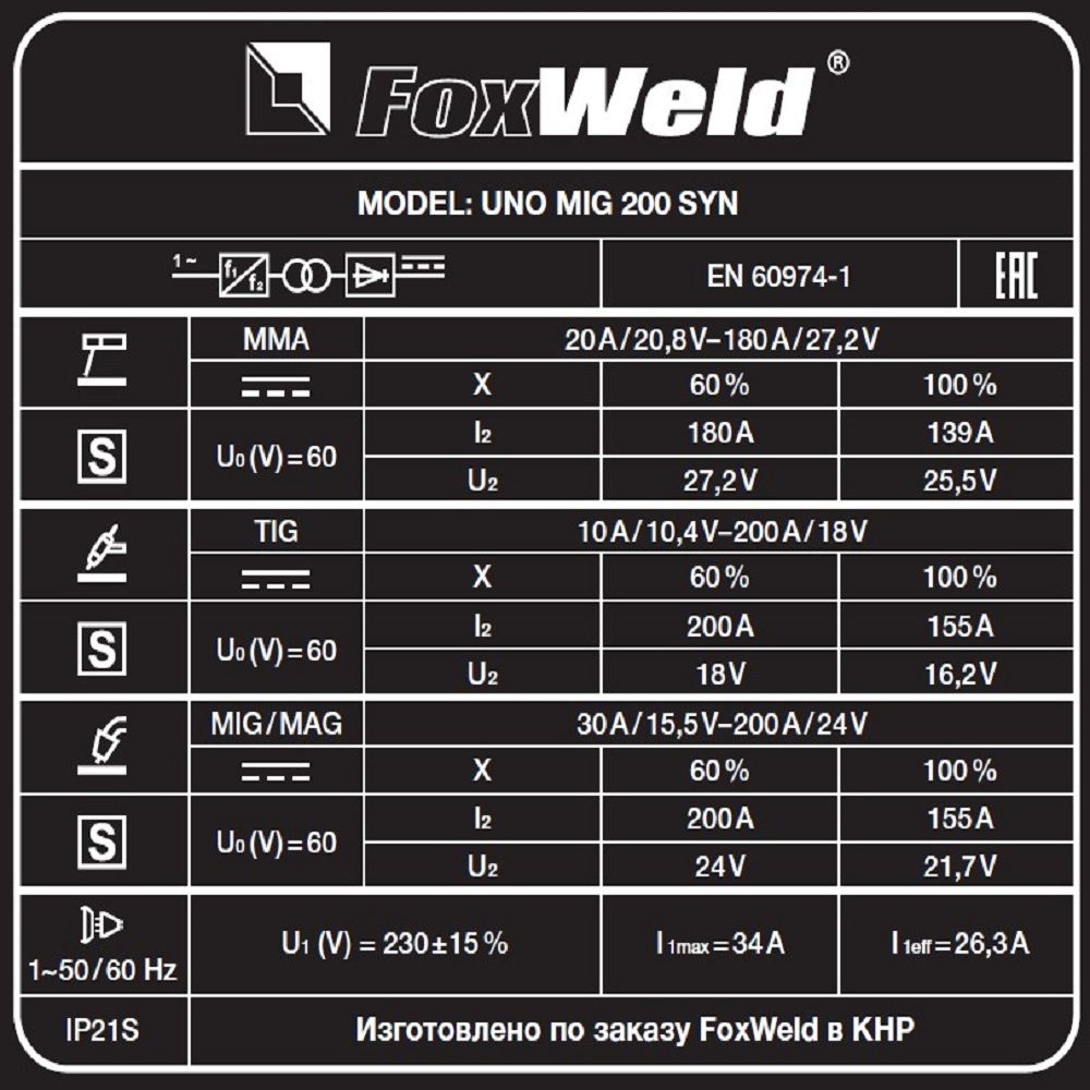 Сварочные инверторы MIG-MAG Fox Weld UNO MIG 200 SYN: характеристики