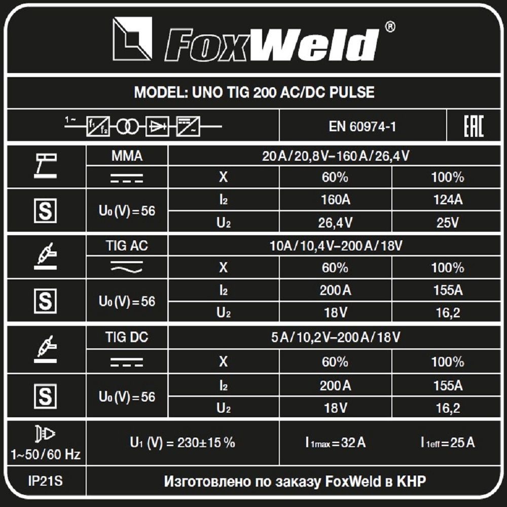 Сварочные инверторы TIG Fox Weld UNO TIG 200 AC/DC Pulse: характеристики