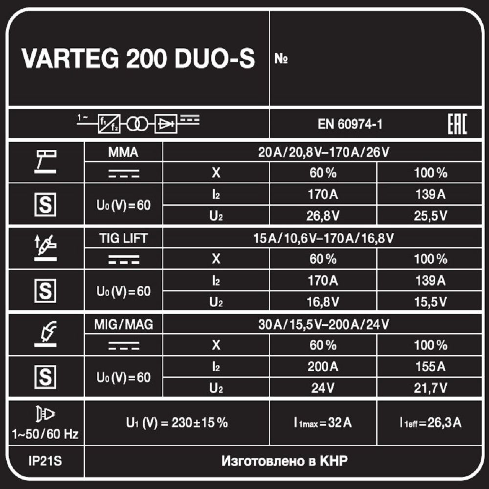 Сварочные инверторы MIG-MAG Fox Weld VARTEG DUO 200-S: характеристики