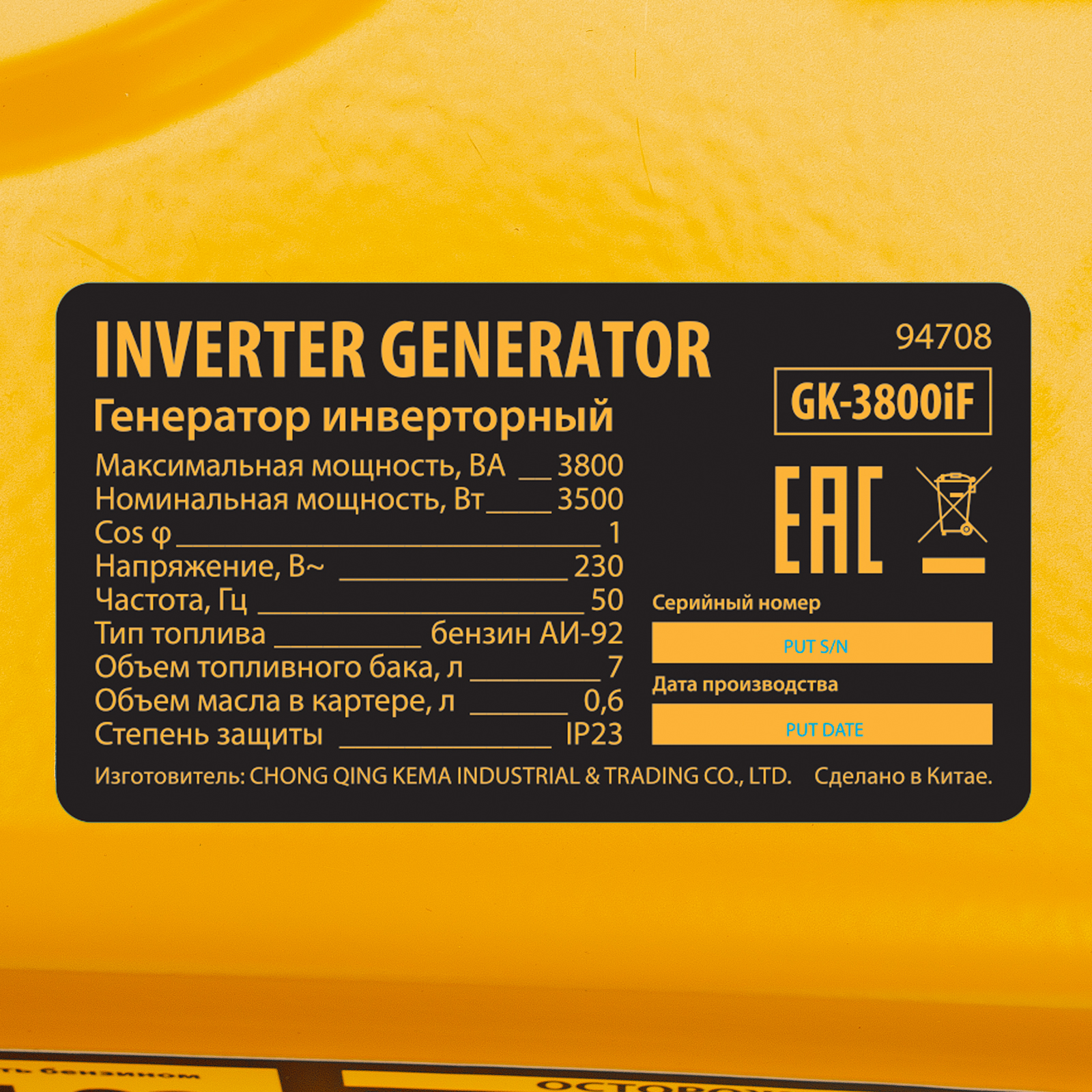 бензиновый генератор DENZEL GK-3800iF 94708