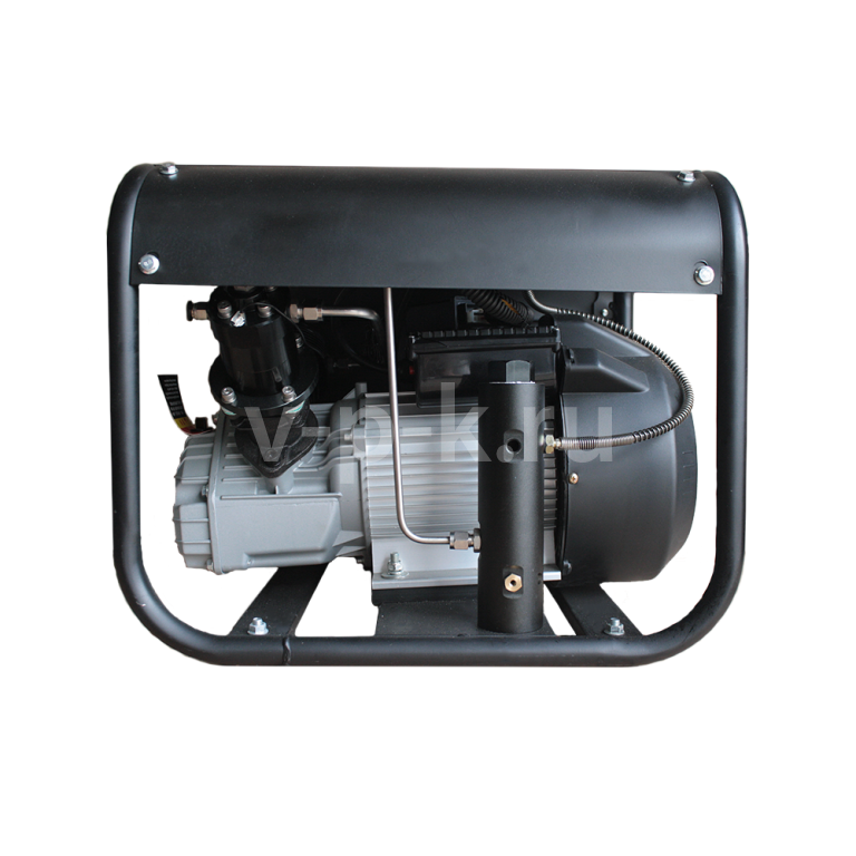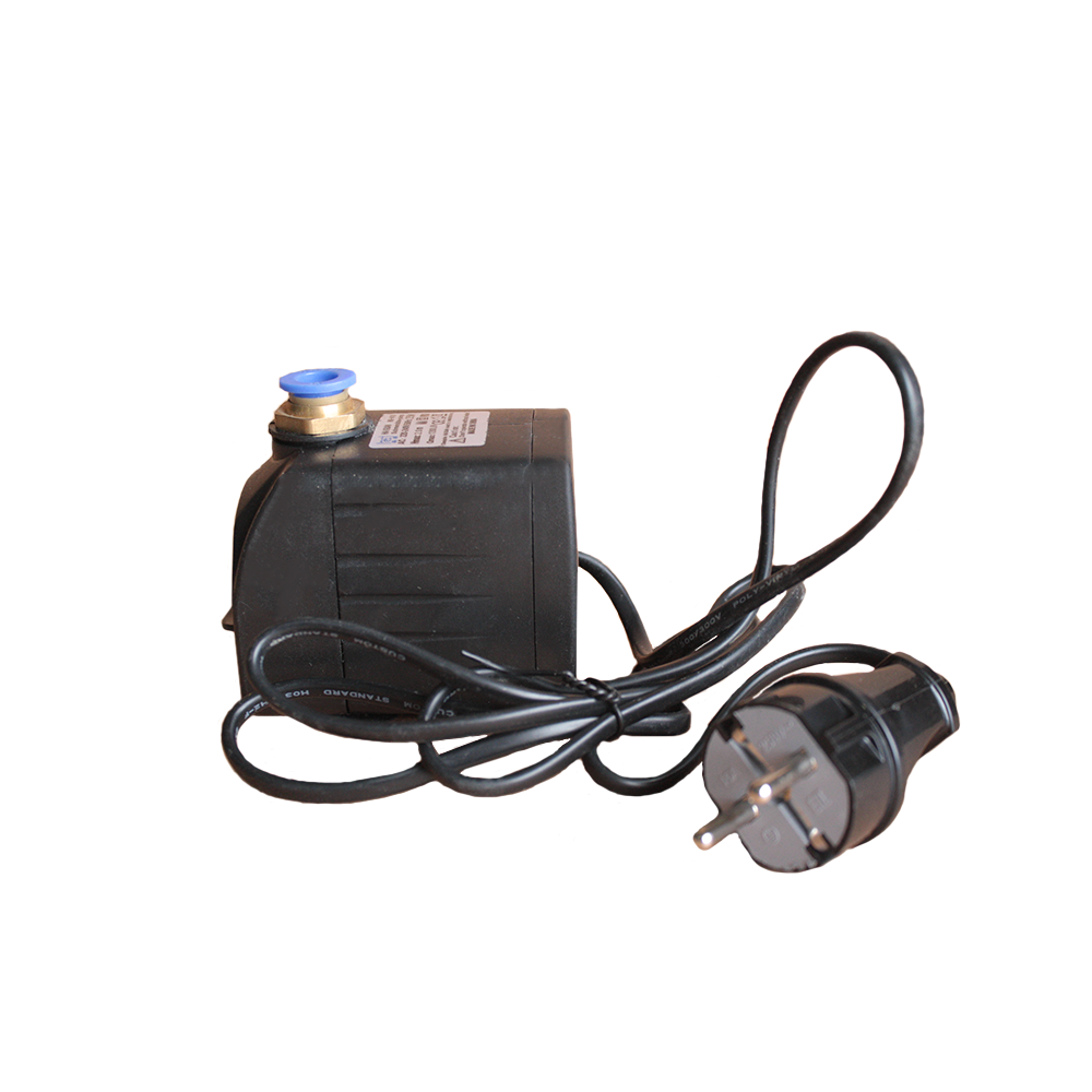 Охлаждение голов цилиндров происходит при помощи внешнего водного охлаждения, для этой цели вмести с компрессором в комплекте поставки идет погружной водный насос и 2 прозрачных шланга.